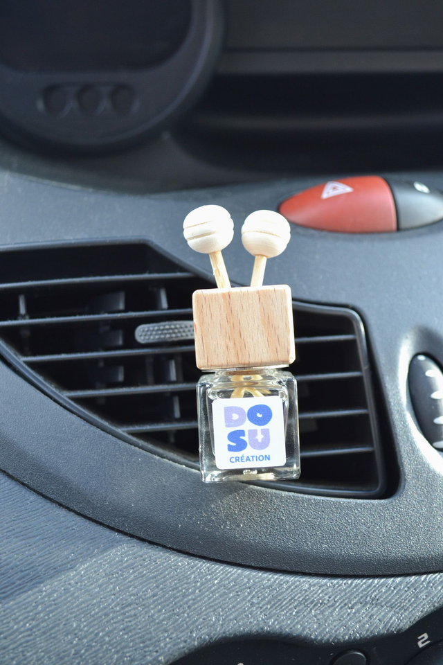 Découvrez nos diffuseurs de voiture faits main, d'une capacité de 8 ml, avec une solution sans alcool, sans CMR, phtalates, sans cruauté animale, sans allergène, non inflammable et avec des parfums de Grasses. Faciles à accrocher aux grilles d’aération de votre voiture avec sa pince métallique et sa protection blanche.