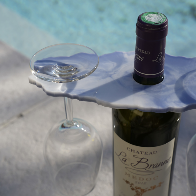 Le majordome se glisse directement sur le col de la bouteille grâce à son ouverture centrale parfaitement ajustée. Les encoches latérales sont spécialement conçues pour accueillir le pied des verres, assurant une bonne stabilité et un maintien sécurisé pendant le service ou le transport.