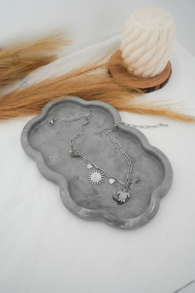 Ce grand plateau en jesmonite, en forme de nuage, arbore une élégante teinte gris foncé qui lui confère un style moderne et épuré. Fait main avec soin, il allie design unique et fonctionnalité, parfait pour sublimer vos présentations ou organiser vos objets du quotidien. Avec sa forme douce et apaisante, il apportera une touche de sophistication et de tranquillité à votre intérieur.