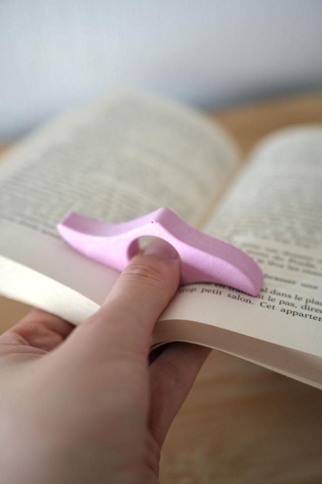 Cette bague de lecture artisanale en résine époxy ou jesmonite permet de tenir les pages d'un livre d'une seule main, libérant ainsi l'autre pour boire un café ou prendre des notes. Légère et ergonomique, elle offre confort et praticité pour les lecteurs assidus. Chaque pièce est unique, avec des finitions soignées et des touches de couleur élégantes.