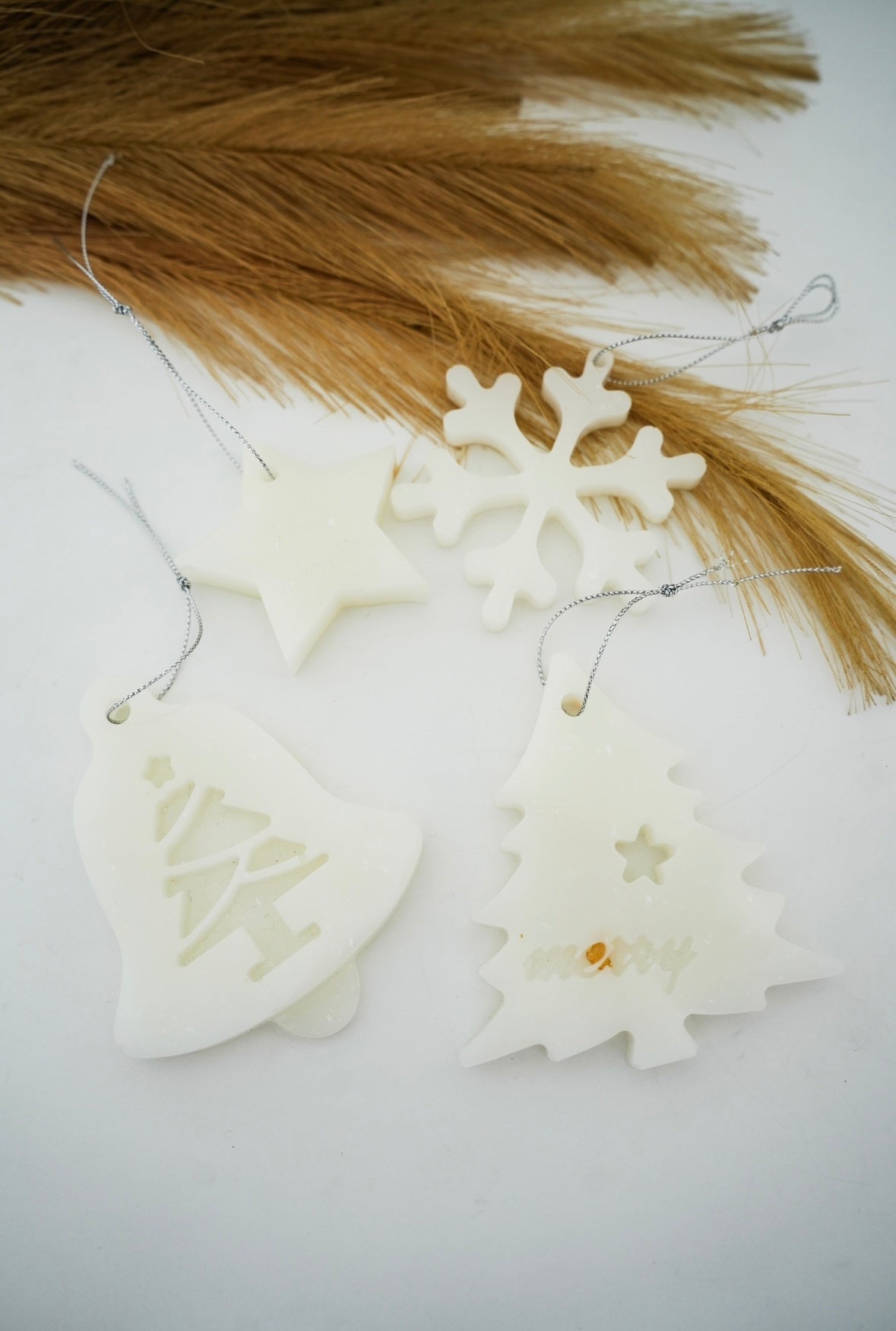 Apportez une touche festive et scintillante à votre décoration de Noël avec ce lot de deux suspensions artisanales, réalisées à la main en résine époxy. Le set comprend une suspension en forme de sapin de Noël, de cloche, de flocon et une suspension en forme d’étoile, chacune pensée pour refléter la lumière et créer une ambiance chaleureuse et féerique.