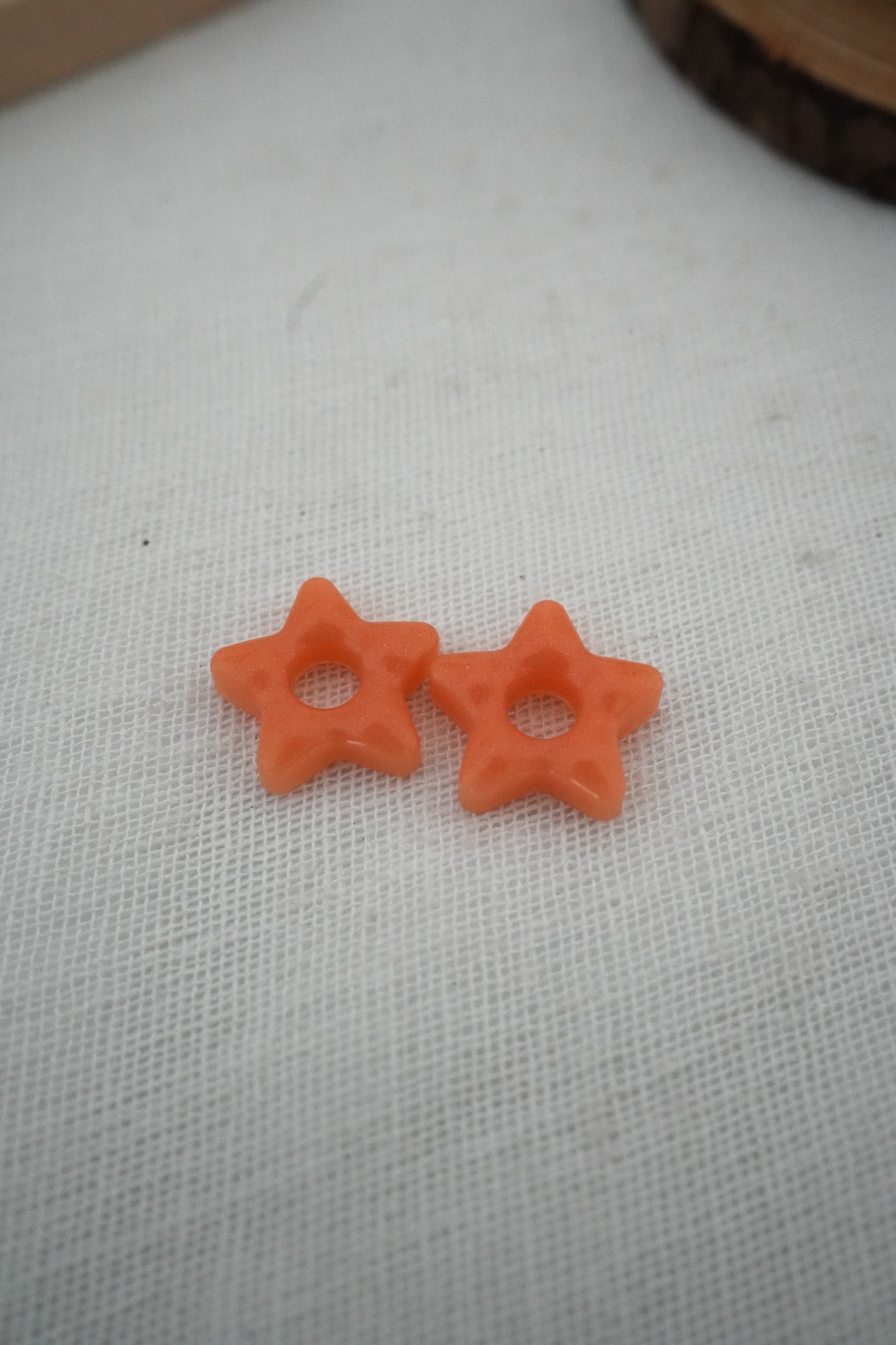 Ajoutez une touche délicate à vos créations de bijoux avec ces jolies pampilles en forme d´etoiles, entièrement réalisées à la main en résine époxy. Légères, lumineuses et pleines de charme, elles sont conçues pour être facilement intégrées à des anneaux de boucles d'oreilles en acier inoxydable.