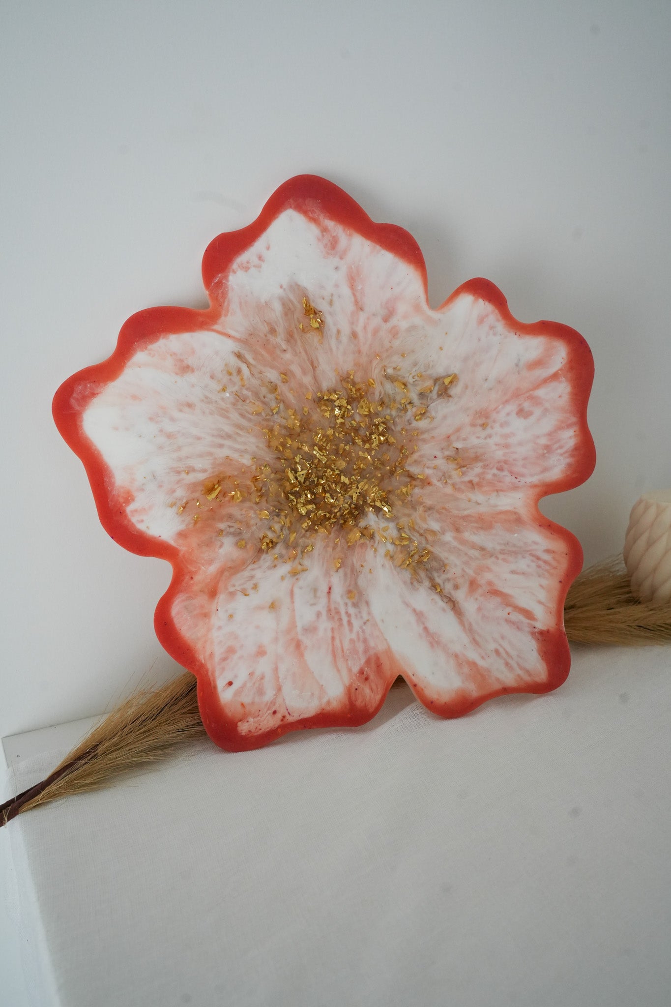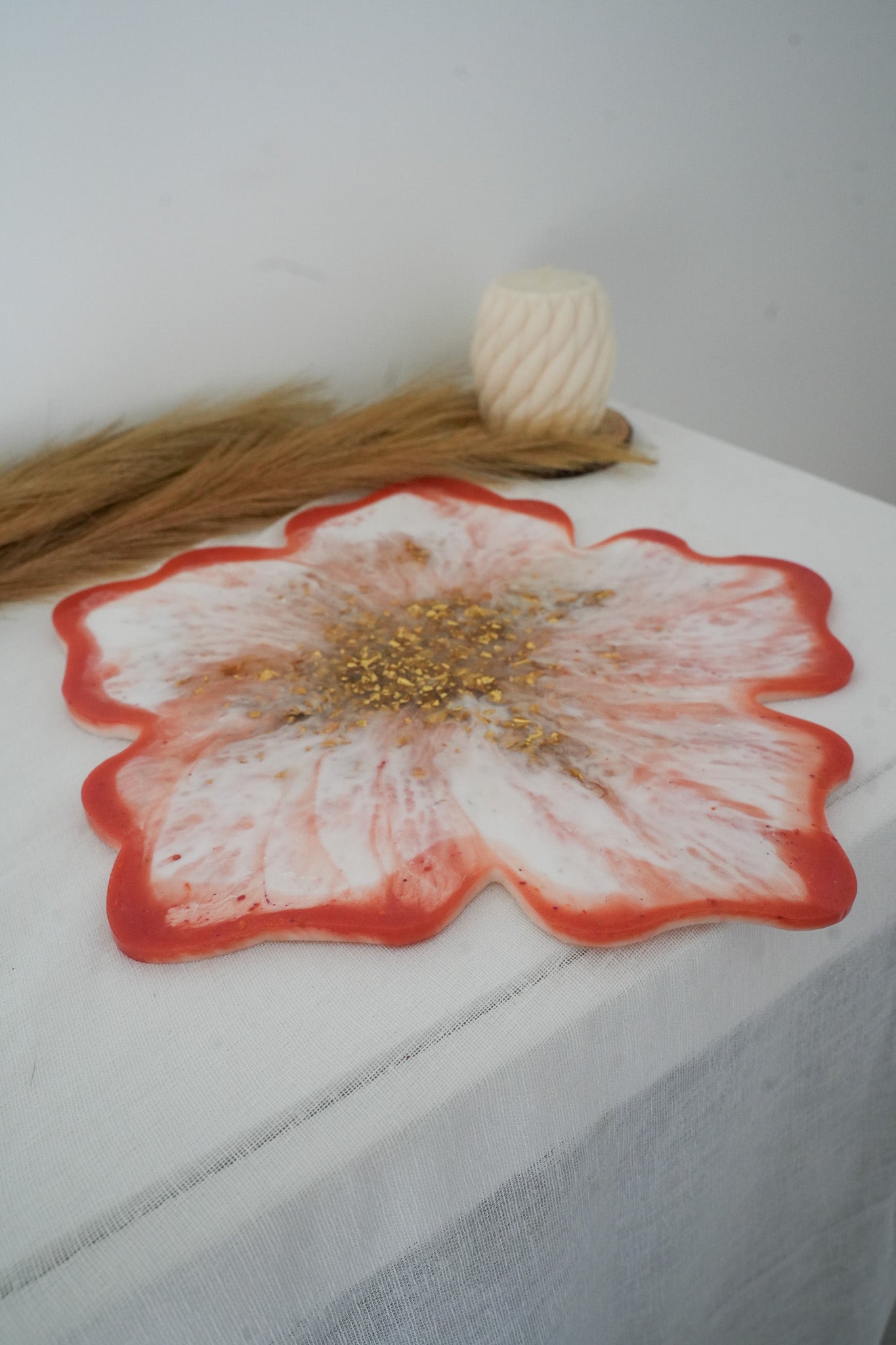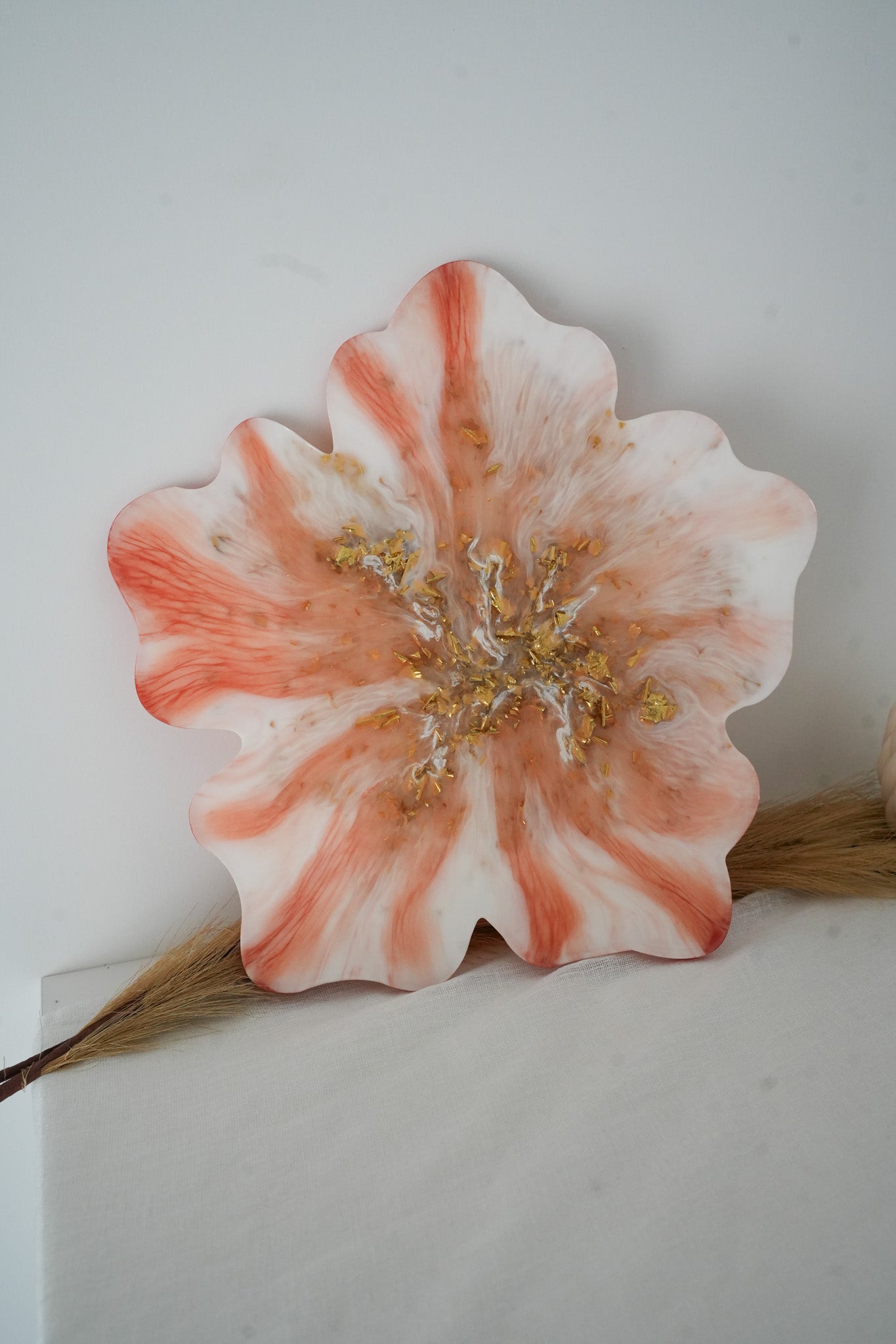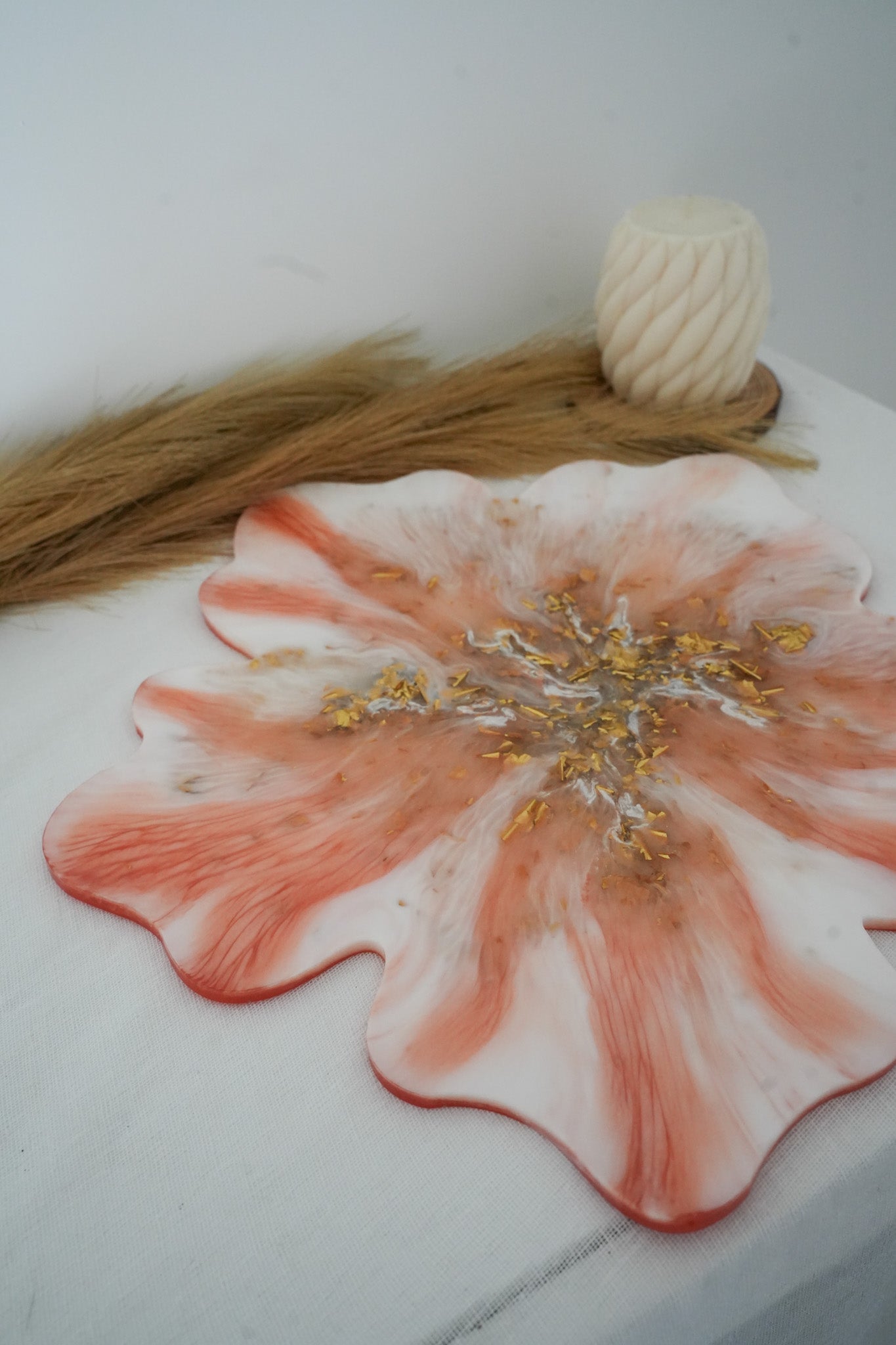 Ce grand plateau en résine, délicatement façonné en forme de fleur, allie élégance et originalité. Sa conception réversible permet une utilisation sur ses deux faces, chacune offrant un rendu unique pour s’adapter à vos envies ou à votre décoration.