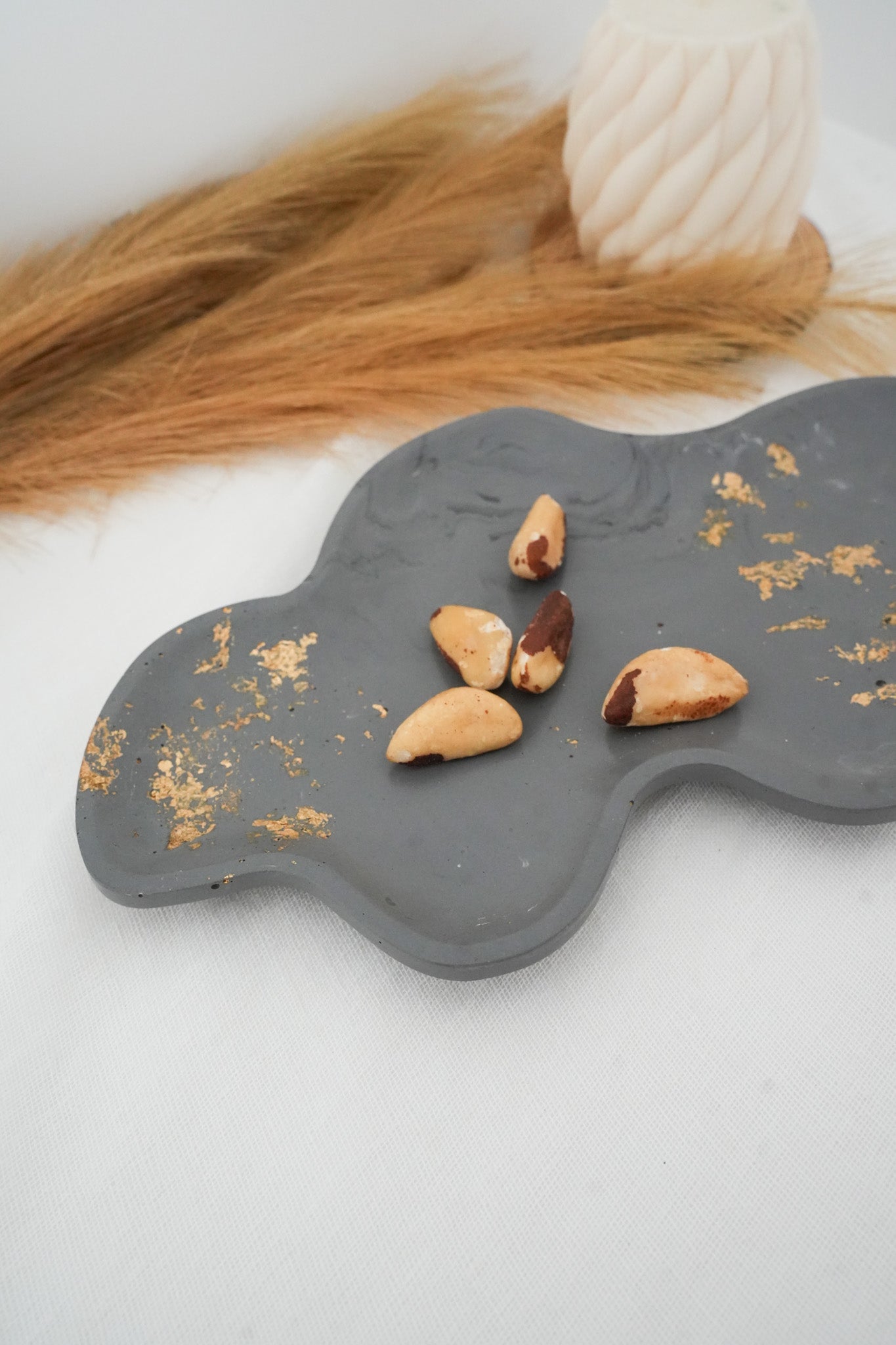 Ce plateau unique, fait main en jesmonite, séduit par son allure élégante et contemporaine. Sa silhouette moderne aux lignes épurées lui confère un style résolument design.