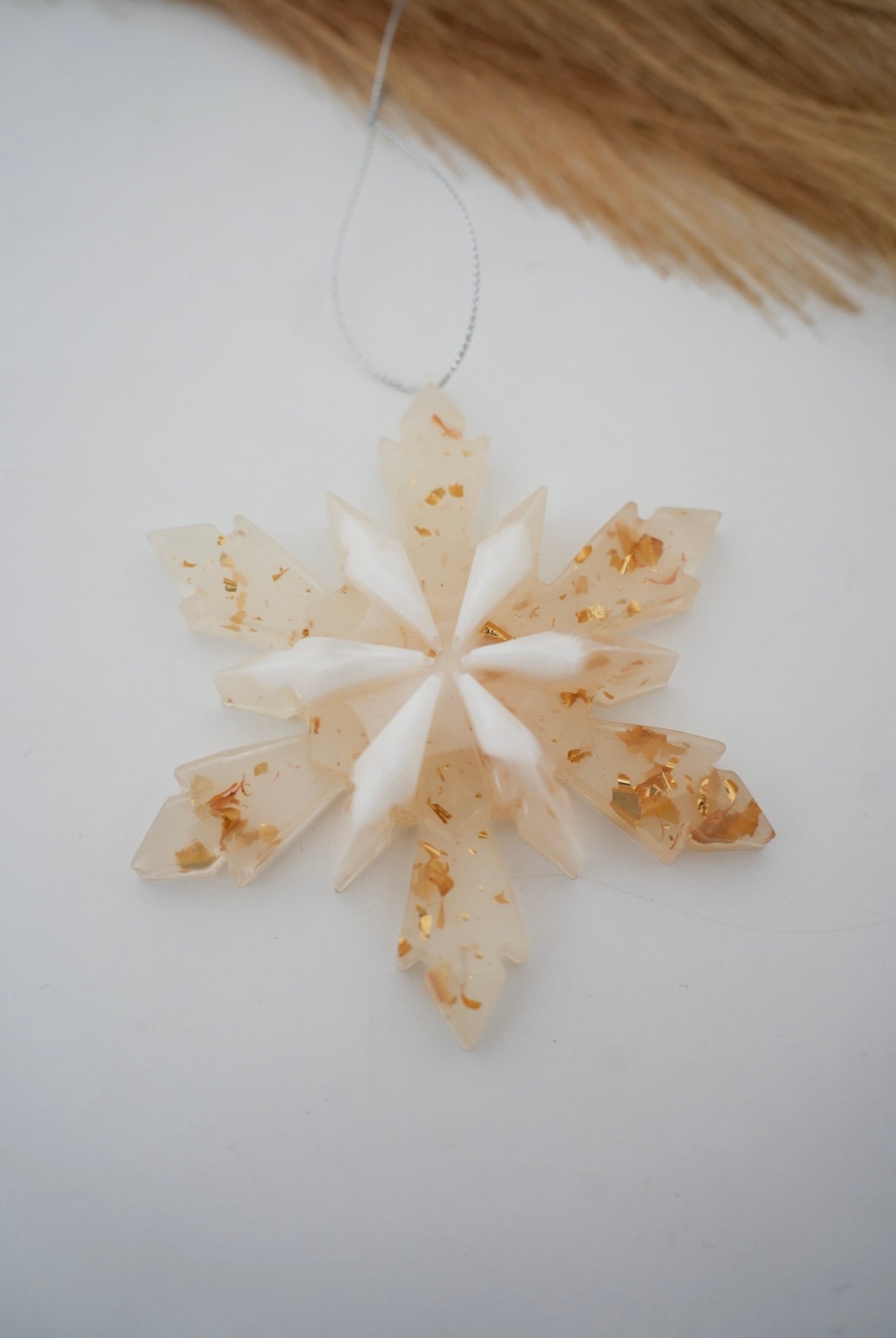 Illuminez vos fêtes avec nos suspensions moyennes en forme de flocons, réalisées à la main en résine époxy. Chaque pièce est unique, avec des détails délicats qui capturent la lumière et apportent une ambiance féerique et chaleureuse à votre décoration.