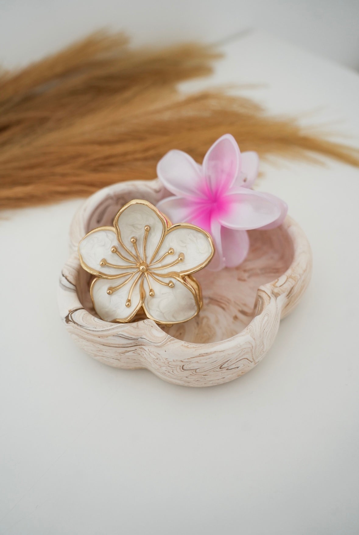 Apportez une touche de nature et de raffinement à votre intérieur avec ce vide-poche en forme de fleurs. Entièrement réalisé à la main en jesmonite, chaque pièce est unique et révèle de subtils jeux de textures et de couleurs.