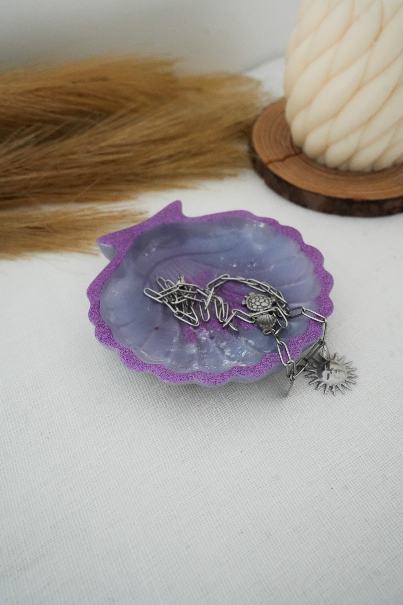 Un accessoire élégant qui évoque la mer et les vacances, parfait pour une ambiance douce et naturelle.