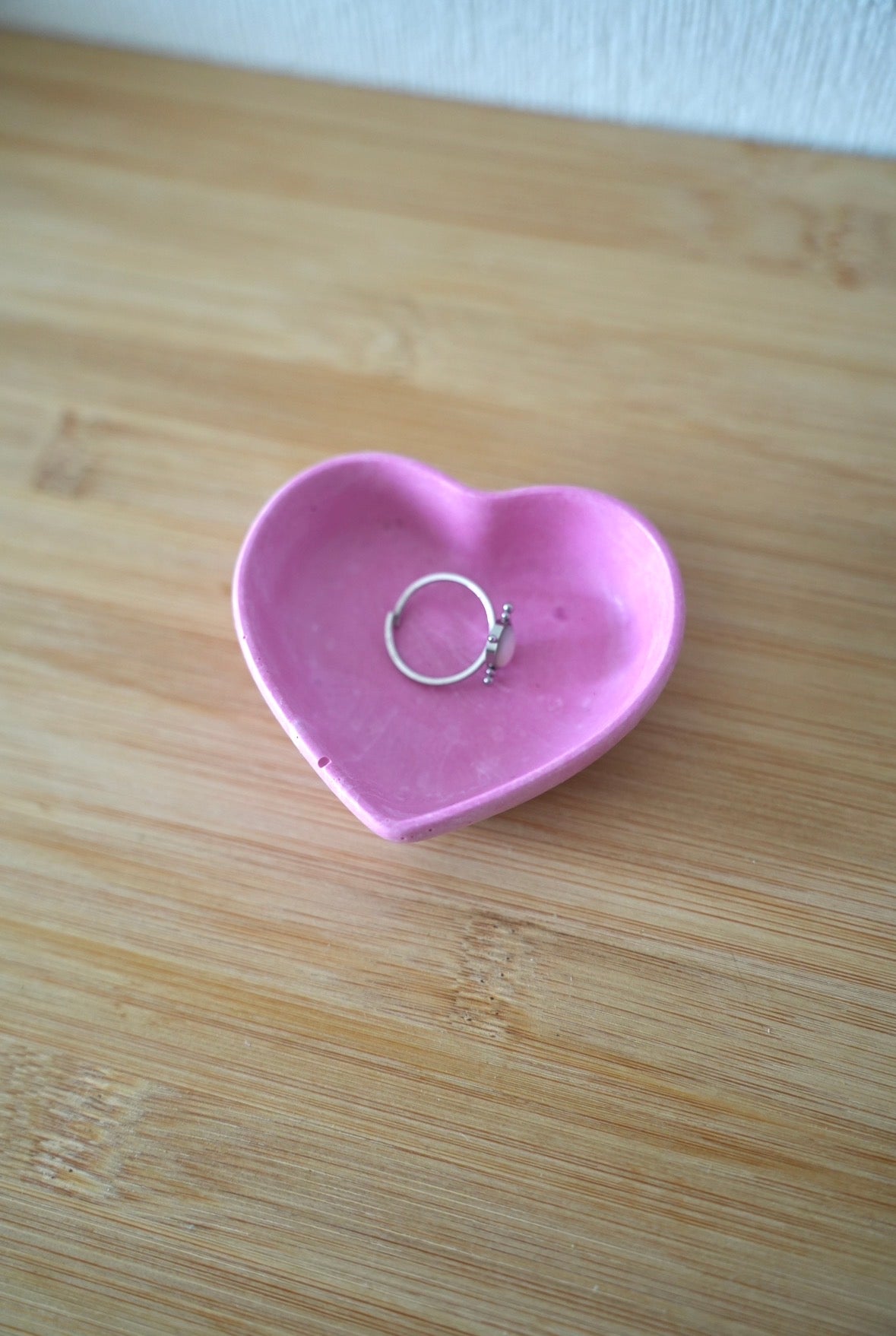 Ce petit vide-poche en forme de cœur est une véritable touche de délicatesse. Entièrement réalisé à la main en jesmonite, il allie finesse et brillance pour sublimer les petits objets du quotidien.