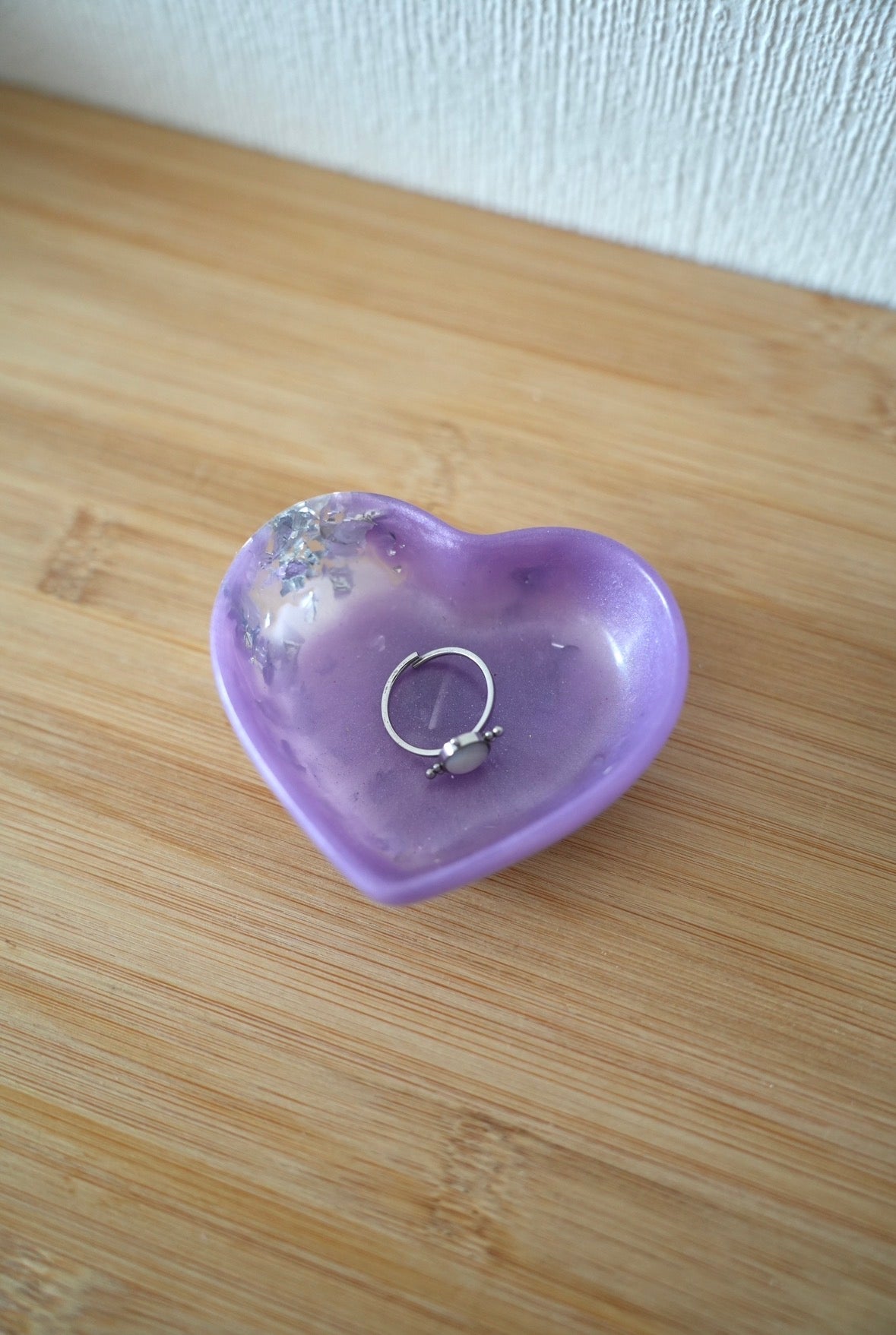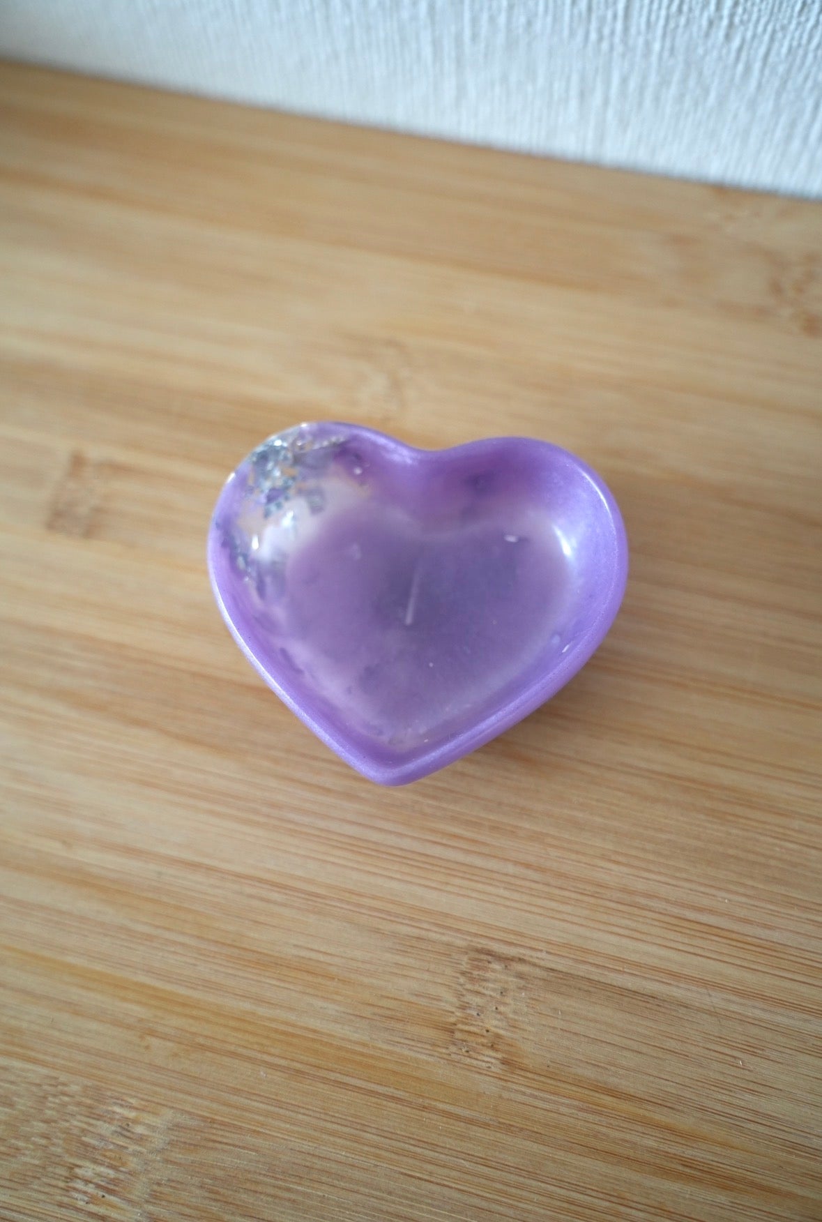 Ce petit vide-poche en forme de cœur est une véritable touche de délicatesse. Entièrement réalisé à la main en résine époxy, il allie finesse et brillance pour sublimer les petits objets du quotidien.