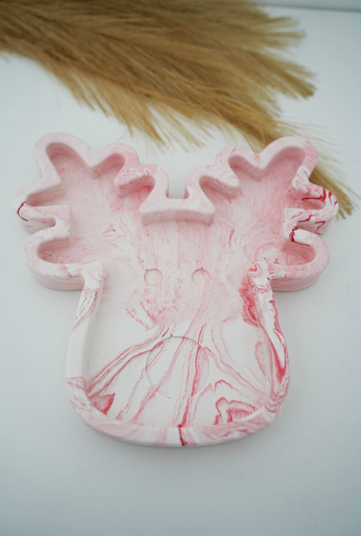 Apportez une touche originale et chaleureuse à votre décoration de Noël avec ce vide‑poche en forme de tête de renne, réalisé à la main en jesmonite. Chaque pièce est unique, avec des détails soignés qui capturent l’esprit festif et convivial de la saison.
