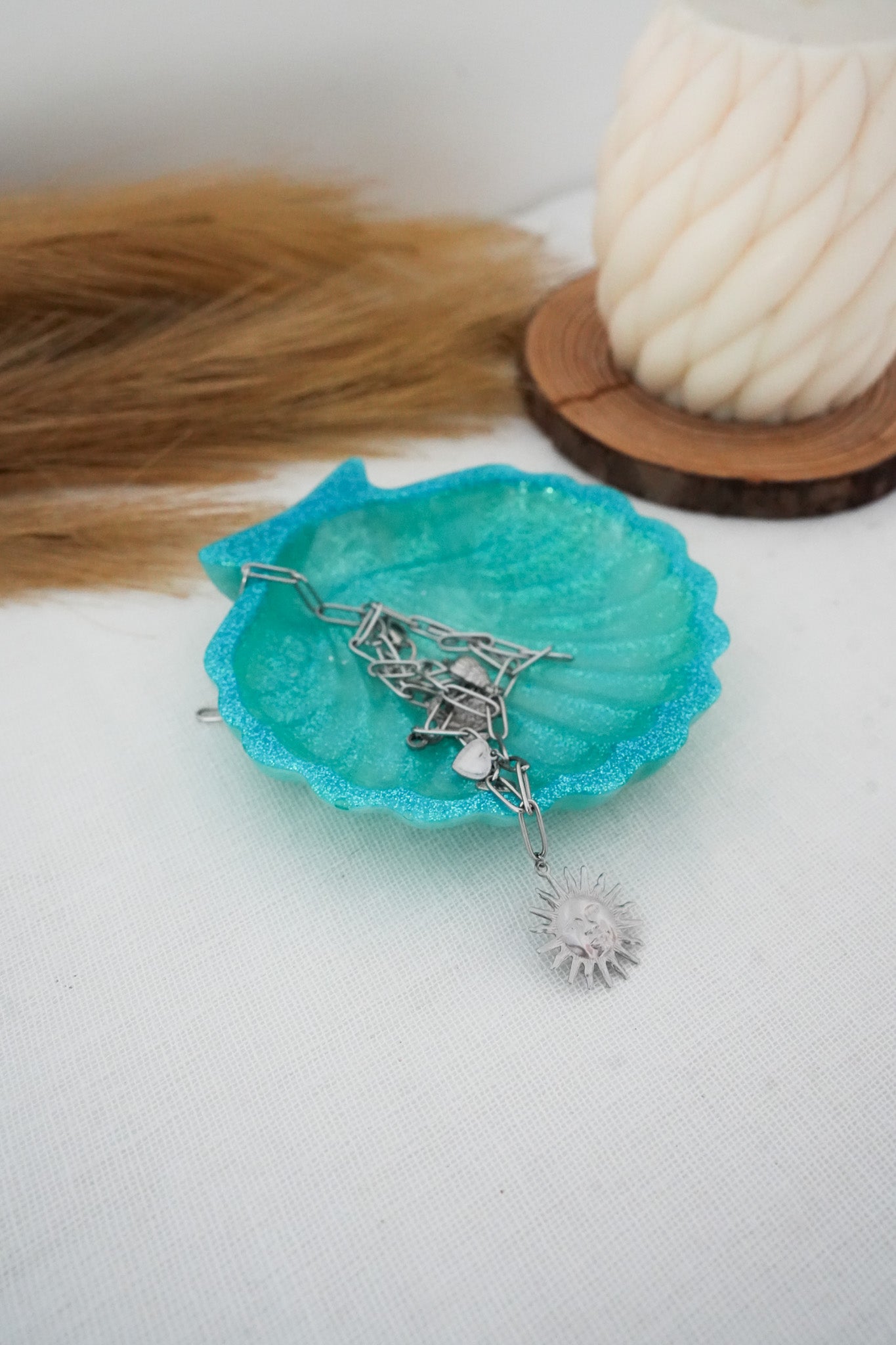Un accessoire élégant qui évoque la mer et les vacances, parfait pour une ambiance douce et naturelle.